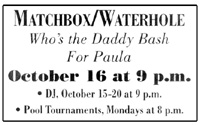 The following advertisement is 100% real. Being the professional that I am, I checked the facts. Paula is indeed a skank ho. She'll love you long time for a six pack and even let you in the back door if you let her win at pool. I attended the event and am happy to say that I am not the Daddy. I didn't fuck Paula but, being a good sport, I put my name in the hat anyway. Apparently, not actually knowing Paula did not disqualify me from the contest. Had my name been picked, simple observation would have counted me out because I, unlike the rest of the possible fathers and one lesbian that was there, have a full set of teeth and bathe daily. By the night's end, no true daddy was chosen, thus leaving the mystery up to Maury Povich and his crack team of paternity testers. Good luck finding the father, you stupid knocked-up whore.