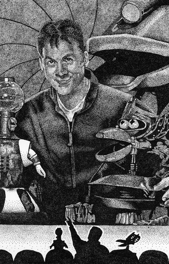 UNLESS YOU'VE LIVED UNDER A ROCK FOR THE PAST DECADE AND A HALF, OR HAVE COMPLETELY SHUNNED THE WORLD OF SCI-FI GEEKDOM, YOU PROBABLY KNOW WHO MIKE NELSON IS. MAYBE NOT BY NAME OR FACE, BUT AT LEAST BY HIS SILHOUETTE. MIKE NELSON-- ALONG WITH HIS ROBOT FRIENDS-- WERE THE HOSTS OF THE CULT PHENOMENON MYSTERY SCIENCE THEATER 3000. BOOM BOOM STORM CLOUD HAD THE PLEASURE OF SITTING DOWN AND TALKING WITH MIKE ABOUT BOOKS, MOVIES, AND EXPLODING PUPPETS.