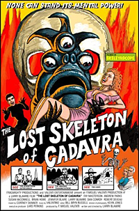 That’s what makes this month’s Freak Film, The Lost Skeleton of Cadavra so drop dead funny. Made just 4 years ago Cadavra takes all those cheesy elements that we all love so much in those old monster movies and pay loving tribute with every awkward line and bad piece of scenery.