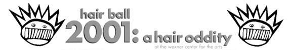 HAIR BALL 2001: A HAIR ODDITY - The Wexner Center celebrated the fifth anniversary of their ever-bizarre Hair Ball on March 24th. Being a Hair Ball virgin, I didn’t know exactly what to expect. After seeing it, the best way I can describe it is a Tim Burton film mixed with a lost episode of Pee-Wee’s Playhouse. The costumed attendees went all out. Highlights of the night include a group of bee-hived bingo grannies accompanied by a guy dressed up as the bingo machine. One attendant’s head donned the doomed Muir Space Station. But my personal favorite of the night was an amazingly detailed Edward Scissorhands who showed up with two friends dressed as sculpted bushes. It’s a sure thing that the Hair Ball will return again next year with more costumes, more surprises and more hairdos. So start getting your costume ready now.