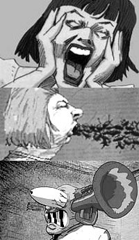 When a pair of fucking birds (that’s a verb, not an adjective) wreck Grant Boyer’s satellite dish, which in turn zaps and mutates a lobe growing from the imagination portion of his brain, it sets the stage for madcap laughs, beguiling musical numbers, raucous violence and weird sex. It’s Bill Plympton’s second full-length animated film, I Married A Strange Person. Keri, Grant’s brand spanking new wife, has noticed something strange about Grant in recent days. For instance, when she asks for one of his red hot kisses, his lips catch fire. When calling her mother to discuss the gargantuan size of his penis, the phone inexplicably turns into a rib cage. When they have sex, she turns into the Statue of Liberty and Grant makes balloon animals with her breasts. And Keri’s not the only person who notices. In fact, after their neighbor gets assaulted by the very lawn he’s mowing, he puts a call into the Jackie Jason Show to sign him up as a guest. Once Grant makes a giant head burst from the floorboards on national television, everybody, including TV mogul Larson P. Giles, notices just how strange Grant has become. And everyone wants to use his powers for their own evil schemes. The standout difference between Plympton’s first feature, The Tune, and Strange Person, aside from the cohesion that The Tune lacked, is the addition of gallons of guts and tits. Although it’s not widely discussed in film classes from UT to NYU, everybody knows that guts and tits improve the entertainment value of a film tenfold. And in the hands of Plympton, having a Smile Corp., soldier surfing on a comedian’s carcass while firing live ammo, or giant breasts that grow so big they burst from Grant’s windows and flop into the front yard makes it more of an art form.