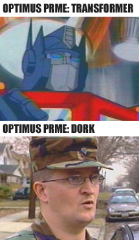 CUYAHOGA FALLS, OH - A member of Ohio's 5694th National Guard Unit in Mansfield, Ohio legally changed his name to Optimus Prime, a fictional cartoon character from a popular television cartoon from the 1980s called The Transformers. Mr. Prime legally changed his name on his 30th birthday, and now it's on everything, from his driver's license to his military ID.