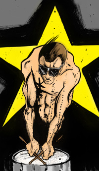 I HAD JUST REVIEWED THE NEW FULL-LENGTH DEBUT ALBUM FROM STELLASTARR* WHEN INSANE WAYNE CHINSANG ASKED ME IF I WANTED TO INTERVIEW THEIR DRUMMER, ARTHUR KREMER. I’D NEVER DONE AN INTERVIEW BEFORE. I WAS NERVOUS. BUT ARTHUR WEARS AN ASTERISK MADE OF ELECTRICAL TAPE OVER HIS RIGHT NIPPLE AT EVERY SHOW. AND I REALLY LIKED THEIR ALBUM. THESE THINGS CALMED ME, SO I DECIDED TO GIVE THE INTERVIEW A SHOT. THE RESULTS WERE,.. UM,.. WELL, MY SKILLS AS AN INTERVIEWER MAY COME INTO QUESTION HERE, BUT I LIKED TALKING TO THE GUY...