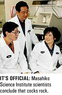 NAGASAKI, JAPAN - Researchers at the famed Masahiko Science Institute in Nagasaki have conclusively proven the heretofore unsubstantiated theory that cocks rock.