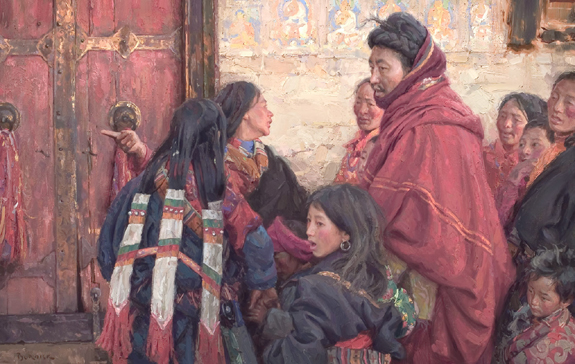 SB: Oh, yeah! There are some really good Western painters, and there will be many more good Western painters coming now. I don’t mean that it's dead and that no people should do it. They should do it if they are honestly drawn to it. Too many artists are doing it because it is such a sellable subject. Anything you paint in it will sell. But the ones that are truly attracted to it, and it's their subject, they are gonna do great things. It doesn’t really matter what one's subject matter is. You also can’t shy away from things just because they are considered very sellable. If it's your subject, then you just have to do it. It was interesting going to Tibet. Four artists went, and we all rented a Range Rover and went to all these different places. It's funny now to see our show, because even though we were all in the same place and painting the same things, they’re all completely different. It's amazing how my wife has such a different view. Her people look happier, for instance. My subjects have a different sort of look that I was attracted to. Then Weizhen [Liang], her people look very dark and moody. Even though everyone was painting the same things we were all painting a different side of it, because the way they perceive it is different.