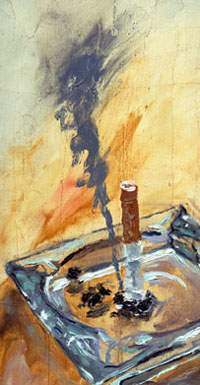 I was in the latter category; always in the non-smoking section, often exaggerating coughing when a smoker lit up around me. And, sweet tits in the sunshine, if a friend of mine started smoking? I’d give him/her three kinds of shit. And forget dating a smoker. If I wanted to kiss an ashtray, I’d... well, kiss an ashtray, I suppose. Or get therapy. Who the hell would kiss an ashtray? Is that a fetish?