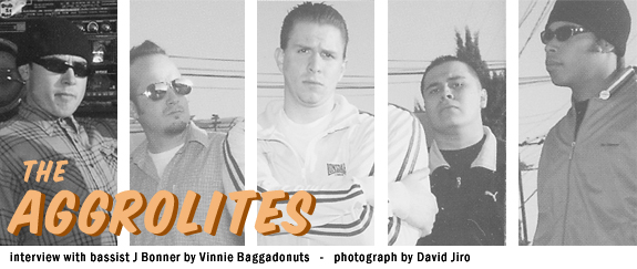 A WISE MAN ONCE SAID, "AIN’T NO PARTY LIKE A WEST COAST PARTY." I BELIEVE IT WAS DRE... MAYBE SNOOP. NO MATTER. THE AGGROLITES WON’T ARGUE. IN FACT, ALL THEY’LL DO IS BACK IT UP, 200%. OUR VERY OWN VINNIE BAGGADONUTS TALKED WITH BASSIST J. BONNER ABOUT THE TIMELESS SOUND THEY POSSESS, THE MUSICAL LEGENDS THEY’VE BACKED, AND WHAT’S NEXT IN THIS, THE YEAR OF THE AGGROLITES.