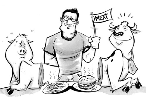 To test my theory, I called up my Uncle Jeff, who is a farmer. He told me that he raises cows, not pigs. But he was pretty sure bacon is meat.