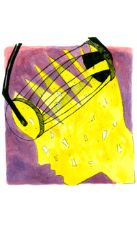 I feel like someone is standing on my head. A big fat guy is just standing there, and every once in awhile he shifts his weights from the front of my head to the back. He's got my skull sandwiched in between his immense tonnage and the hard concrete of a sidewalk. Every time the fat man moves my head gets ground around like a rusty ball bearing in a sandpaper socket.