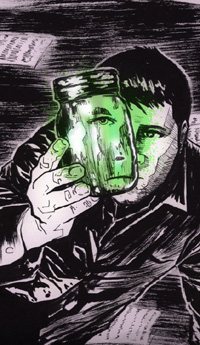 As he plunges his hand in, the dreamy, sweet contents are forced out into the room, and then it's too late. All he can do now is try to inhale the vapors for one last, heady lung-full.