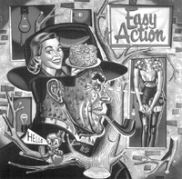 Believe it or not, my scatterbrained preferences reach into the realm of punk music. Something in the whole “I’ll reduce your eardrums to pulp” brand of angst and social awareness you get from bands like Sick Of It All and The Distillers makes me all sparkly inside. Too bad for me, though, that Easy Action is not one of those bands. It’s not like their self-titled debut (Reptilian Records) is God-awful. From the moment it starts, the album takes off at full speed with the instrumental momentum of a 500 lb. Olympic high-diver. The drums, guitars and bass roil and churn in true youth-corrupting fashion. What pulls the plug on this juggernaut’s bar mitzvah are the vocals. It’s as if someone took the catchy, rump-shaking energy of the Ramones and smothered in the chunky gravy singing of Rob Zombie’s illegitimate grandson. While the lyrics manage to entertain (with lines like “,..laid me down and gave me head/wrung me out ‘cause I was dead,..” and “,..if you didn’t mean the world to me/I’d put you in your grave,..”), the distortion addled sound of them was enough to make me lunge for the “Stop” button plenty of times. Aside from the vocal dilemma, the instrumental regiment of Easy Action switches it up enough to keep things interesting on their end. If you do get the album, maybe you can manipulate the equalizer on your stereo to push the vocals as far back as possible. It might help. Maybe. To find out more about Easy Action visit their website here.