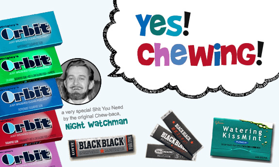 Standard stick-shaped Japanese gum with a strong minty Altoid kick. The real selling point of this gum is that it's caffeinated-– woohoo! It’s a great conversation piece, because it looks cool coming out of your pocket. Especially if you’re one of those creepy people who wears black all the time! What could be more goth than gum called Black Black? (Maybe gum called "Jeff the Vampire".) If you’re lucky, you may find a special added bonus in your pack of Black Black. Every once in a while, you’ll find a wrapper that has the awkwardly translated phrase "Yes, chewing!" on it. Treasure it. This is as good as your life will ever get. The flavor of this one is the least tasty, and doesn’t last very long, but it’s got caffeine-– woohoo! Think of it as a chewy breath mint-– use until dragon breath disappears, then dispose.