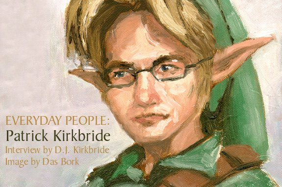 HIS NAME’S PATRICK KIRKBRIDE. HE’S D.J. KIRKBRIDE’S BRO. HE WORKS AT THE BIGGEST COLLEGE IN THE UNIVERSE, PROTECTS OUR GREAT NATION, AND EXCELS AT NINTENDO. HE'S ALSO NOT EASILY AMUSED, AS D.J. FINDS OUT IN THIS INTERVIEW THAT GOES EVERYWHERE FROM ZELDA TO DUBYA BEING RETARDED.