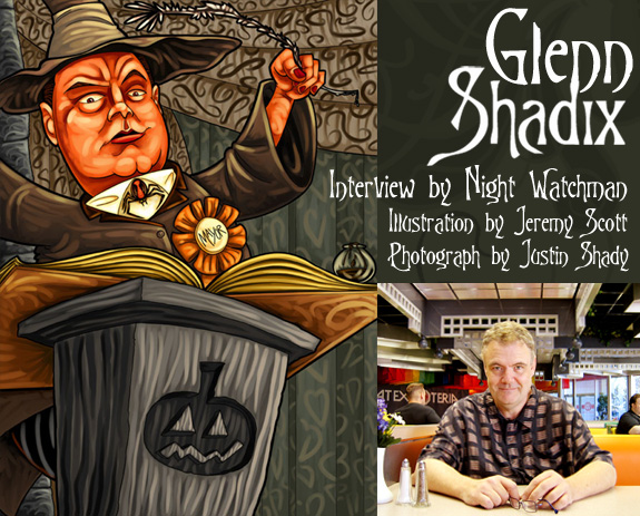 THE PLACE IS THE WIZARD WORLD CHICAGO COMIC CONVENTION. NIGHT WATCHMAN HAS JUST FOUND OUT THAT GLENN SHADIX-- BETTER KNOWN TO THE WORLD AS OTHO FROM BEETLEJUICE AND THE MAYOR FROM NIGHTMARE BEFORE CHRISTMAS-- IS SIGNING AT THE CON. HE SPRINGS INTO ACTION, SEARCHING HIGH AND LOW UNTIL AT LONG LAST HE FINDS GLENN AND BEGS FOR AN INTERVIEW. READ BELOW TO FIND OUT HOW GLENN'S DREAMS OF BECOMING AN ACTOR LEAD HIM TO WORLDWIDE RECOGNITION, AND HOW HE BECAME ONE OF THE FINEST CHARACTER ACTORS OF OUR TIME.