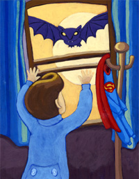 "A bat!" I shouted. "I shall become a bat and strike fear into the very hearts of that superstitious and cowardly lot... the trick or treaters!"
